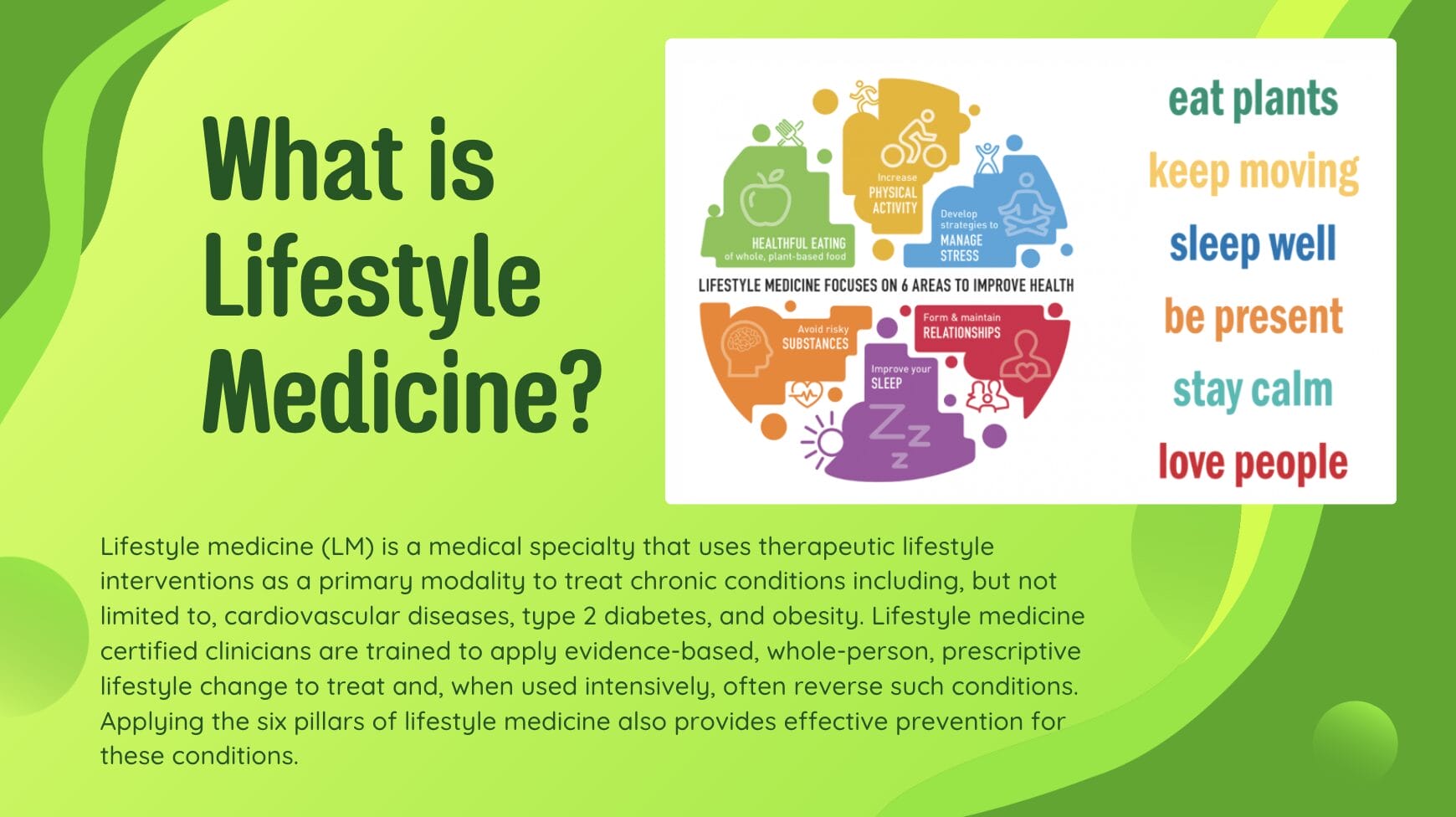 The curriculum emphasizes the 6 pillars of lifestyle medicine; nutrition, physical activity, stress management, sleep health, social relationships and avoidance of risky substances. Students explore the foundations of whole-person wellness through experiential and reflective activities that promote self-awareness, resilience, and compassionate care.